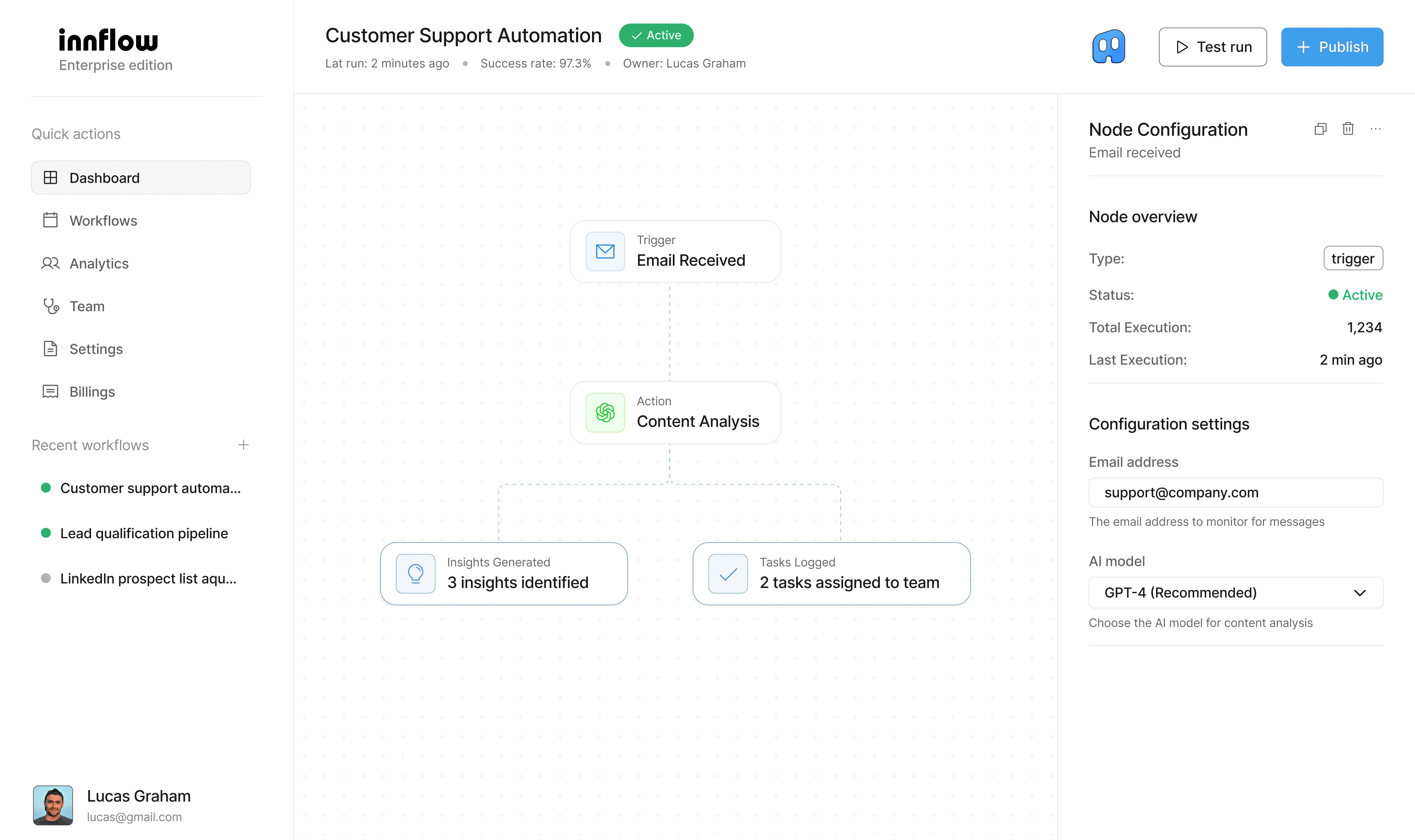 Innflow learns your patterns from existing emails, docs, and tasks no manual training required.